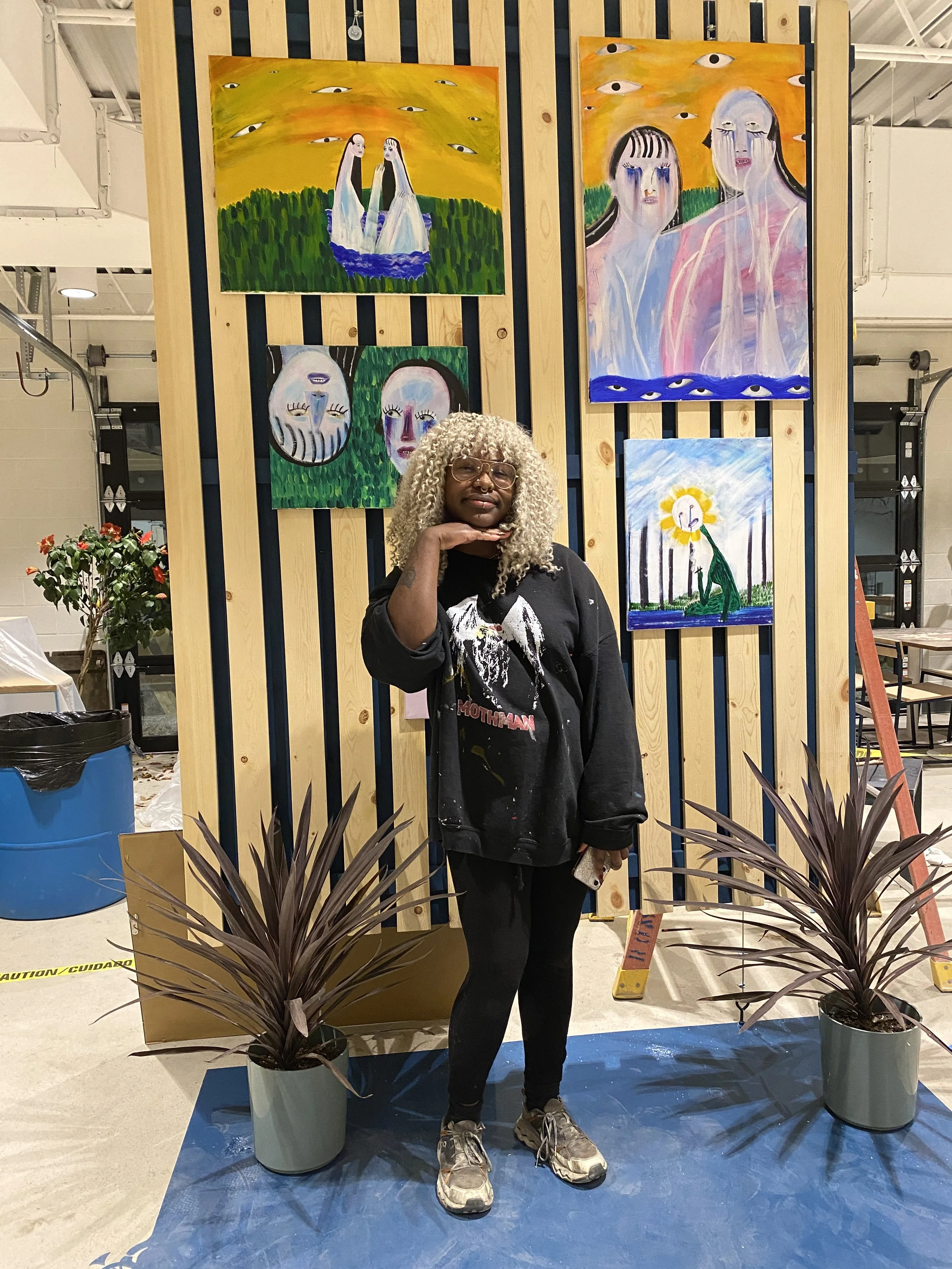 I came to Columbus for college about 13 years ago where I studied sculpture and ceramics at CCAD. I took a pretty long hiatus from art after graduating because of massive burnout and feeling like I simply couldn't do art by myself or around people anymore. After awhile I started to feel a spark again and I started sketching here and there then it gradually built up to filling countless sketchbooks with ink and sharpie/whatever I got my hands on and now I've found myself painting, which is a medium that I never really saw myself getting into but I'm really enjoying at the moment. Eventually I want to get back into sculpture, and namely soft sculpture like I did in school: Lots of sewing, lots of stuffing, lots of large-scale art making. But for now painting has my full attention since it fits in with my current lifestyle of living in a small studio and bartending full time.