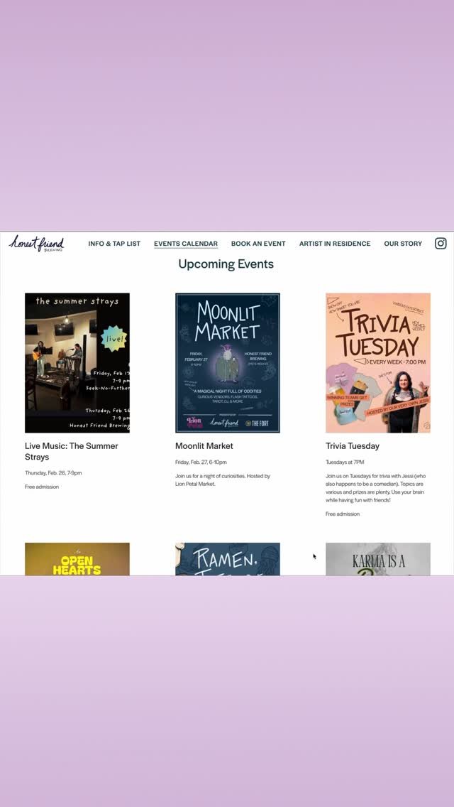 A: We offer rotating food trucks and food-forward events like pop-ups. Also, please feel free to order in or bring your own food.